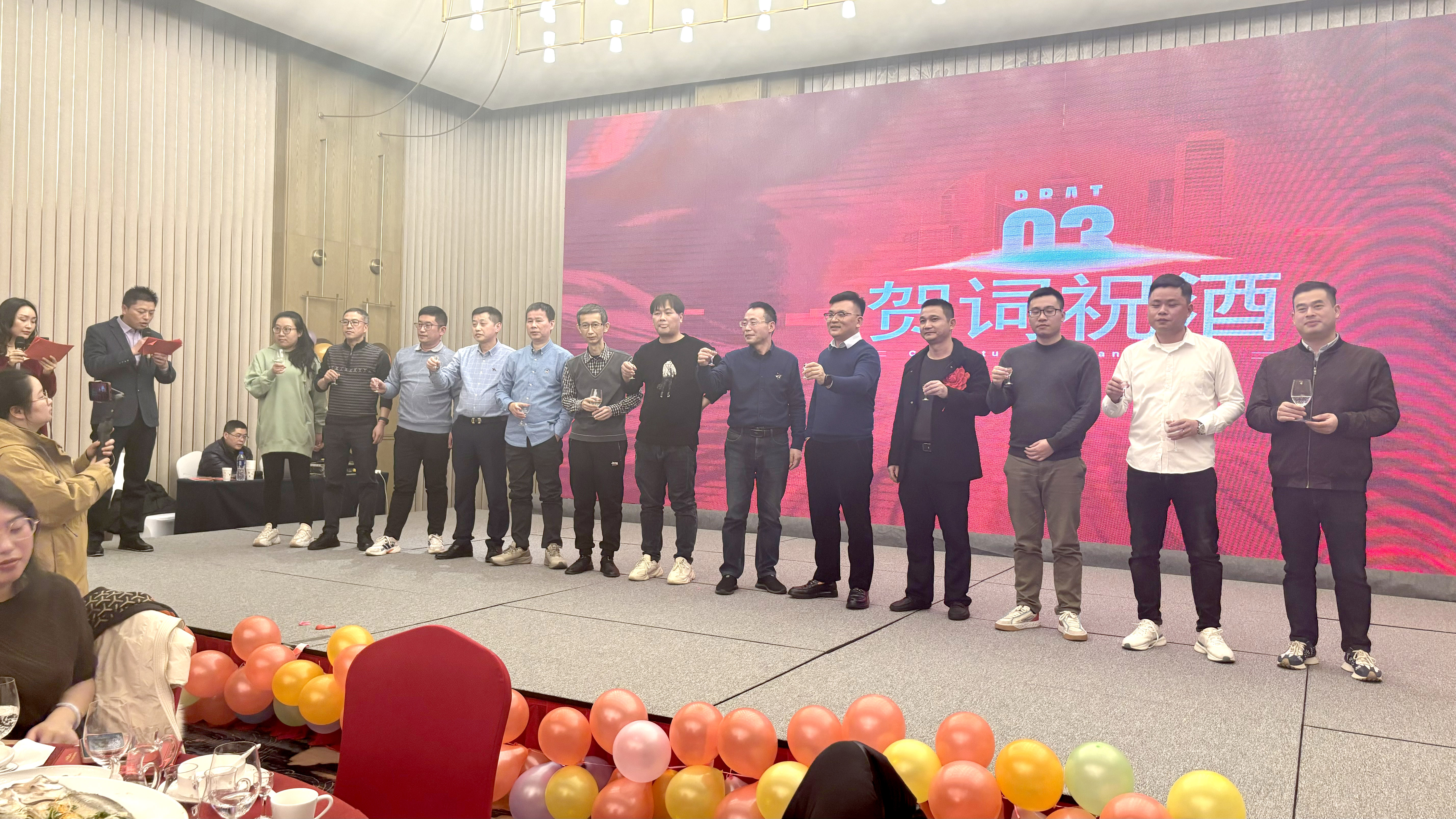 人生得意須盡歡,當(dāng)歌對酒長精神。隨后進(jìn)入高管祝酒環(huán)節(jié)。高管們興致高昂,聲徹大廳。職員們集體起立,喜形于色。酒過三巡,人已微醺。一杯一盞,盡皆情誼。
